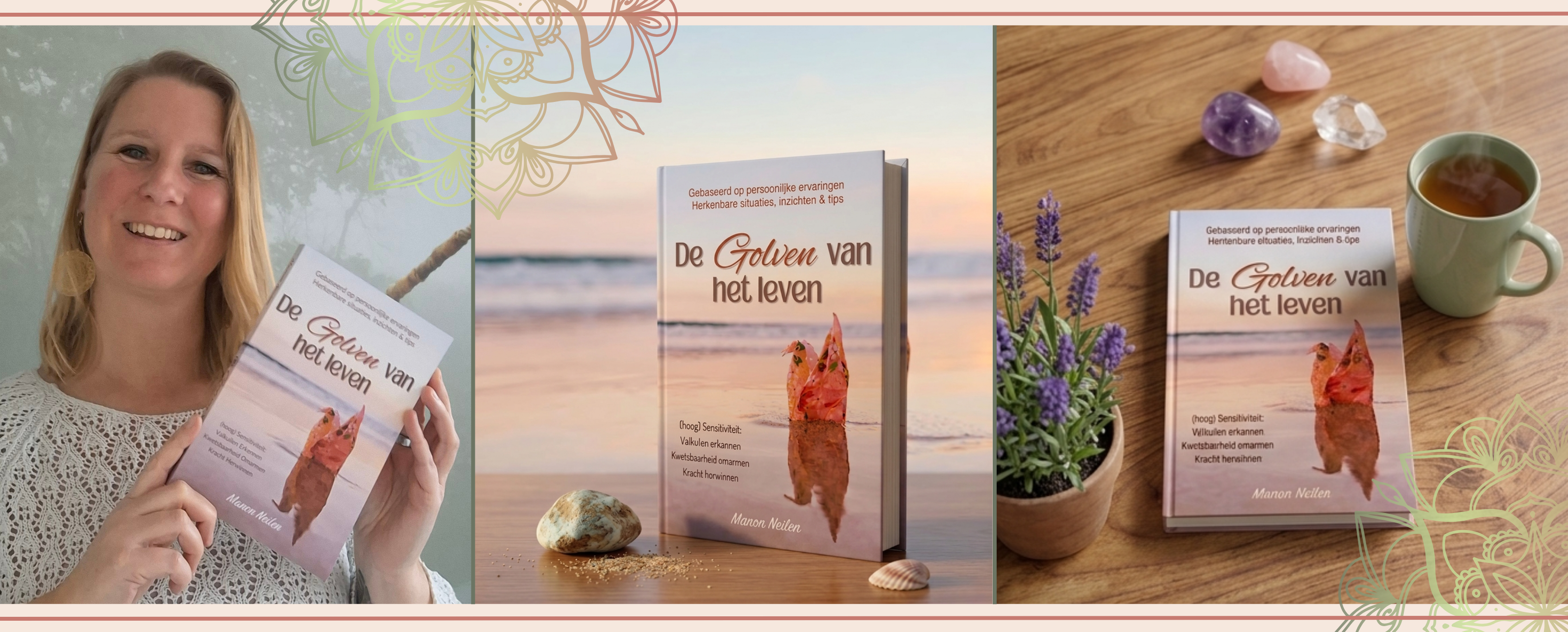 In De golven van het leven maken we kennis met drie vriendinnen Emma, Sofie en Liv. Liv heeft een fijn leven, maar merkt ook dat ze het lastig vind om haar sensitiviteit een plek te geven binnen haar dagelijks leven. per hoofdstuk lezen we de belevenissen van Liv en haar vriendinnen waarbij ze verschillende gebeurtenissen bespreken. Aan het eind van het hoofdstuk geeft Manon tips hoe je hier in je dagelijks leven mee kunt omgaan. Zelfliefde, veerkracht en persoonlijke groei staan hierbij centraal waarbij ze je op een heel fijne manier begeleidt in haar boek.