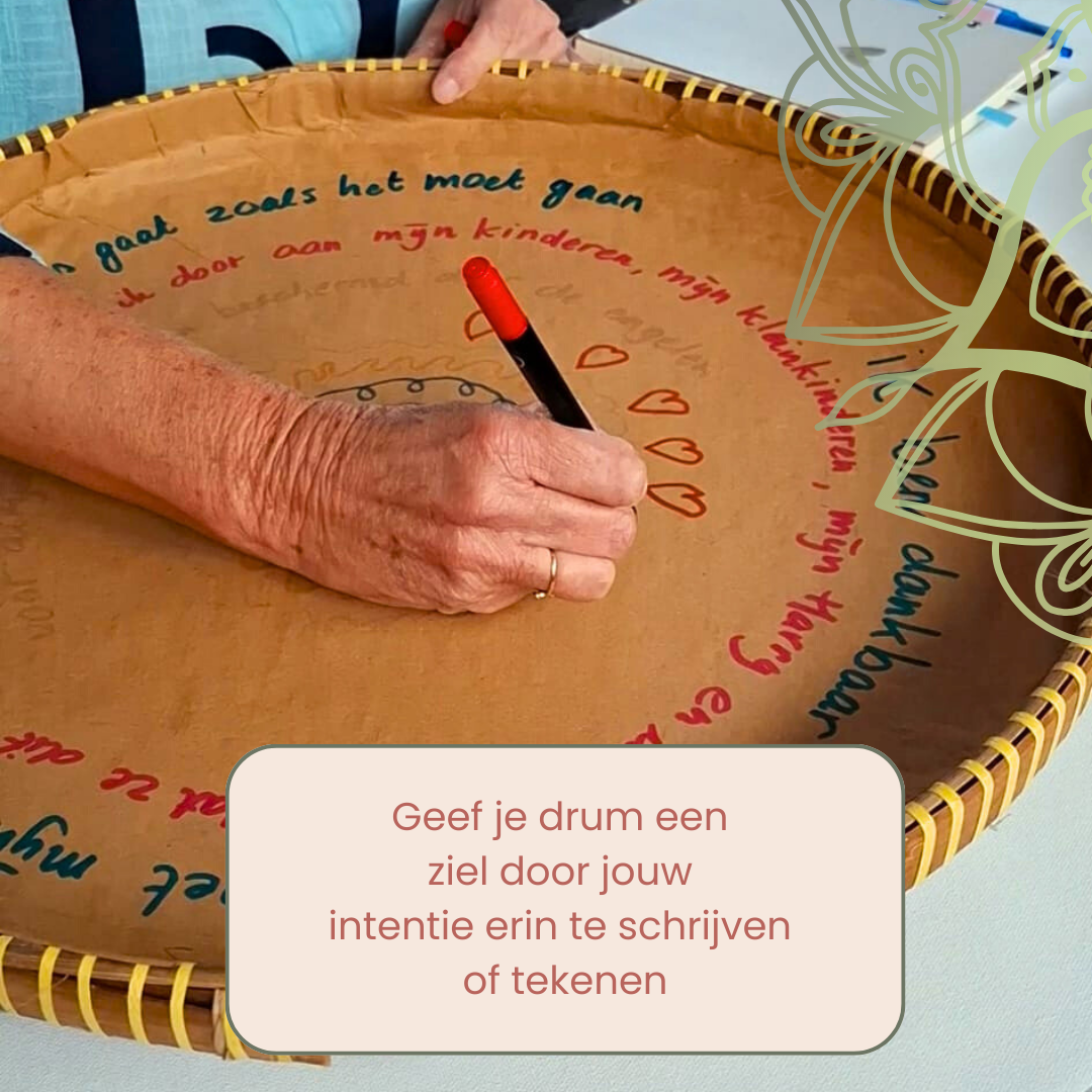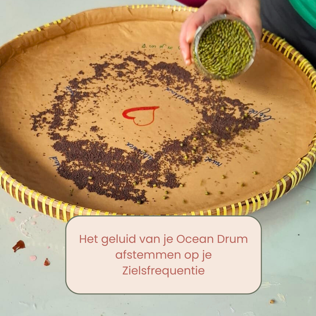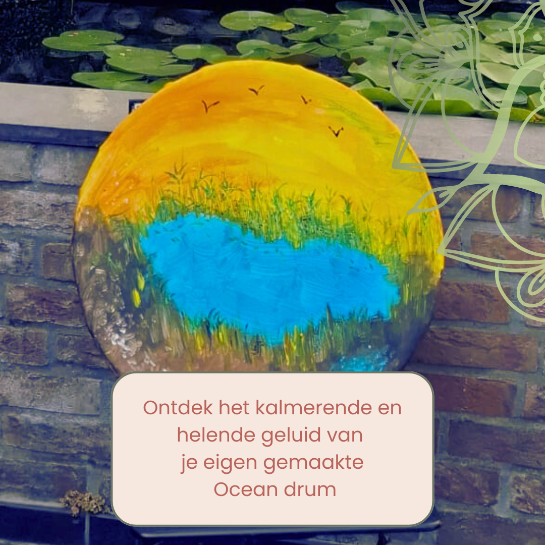 We gaan in deze workshop een Oceandrum maken. Door de schaal te bewegen en draaien, boots je het kalmerende geluid van de zee en de branding na. We gebruiken een platte rieten schaal, die we gaan vullen met zaden en kruiden om een uniek geluid te creëren dat resoneert met je eigen ziel. We gaan letterlijk in beweging komen op het ritme van jouw ziel. Je zult zelf gaan ervaren waar jij je goed bij voelt en wat totaal niet bij jou past. We spannen een schilderdoek over de schaal en gaan de drum intuïtief beschilderen, waardoor je innerlijke kracht vanzelf zichtbaar zal worden. (Let op: op een Ocean drum kan niet getrommeld worden.)
